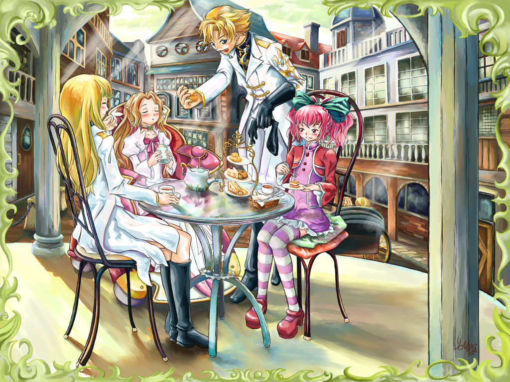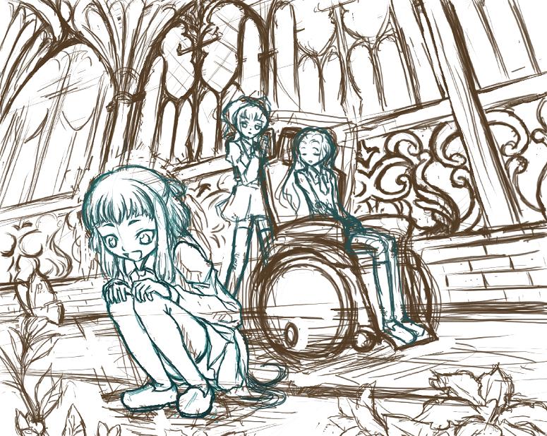 以前書いてた 掲示板の「ナナリーの車椅子をアーニャが押してる絵が見たい」という書き込みが元なのですが、その後に見たギアスR2第6話登場の天子様がべらぼーに可愛かったのでついつい入れてしまった。あと、パースは適当。