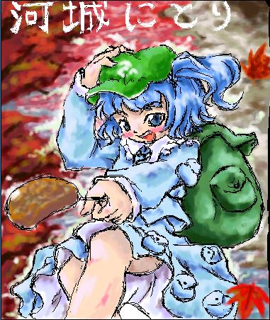 絵茶ソロ特攻作品:昨日は2面ボスの雛だったので今日は3面ボスのにとりを。ススキがフランクフルトになってしまう。