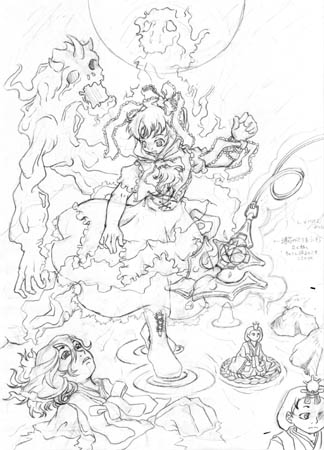 おとぎ銃士赤ずきんみたいな凝った衣装の女の子は描いて楽しいから困る。上手く描けるかは別として。