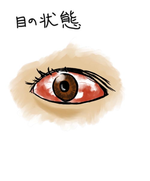 こんなんなってました。充血なんてレベルじゃないです。何かギアスが発動出来そうです。