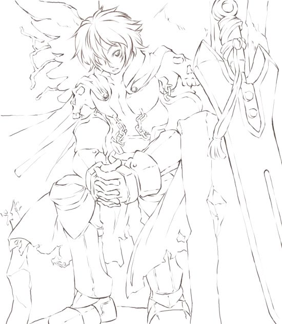 久々に野郎を描こうということで、ネトゲのラグナロクオンラインからボスの一体・魔剣士タナトスの思念体をば。取り敢えず線画だけ。